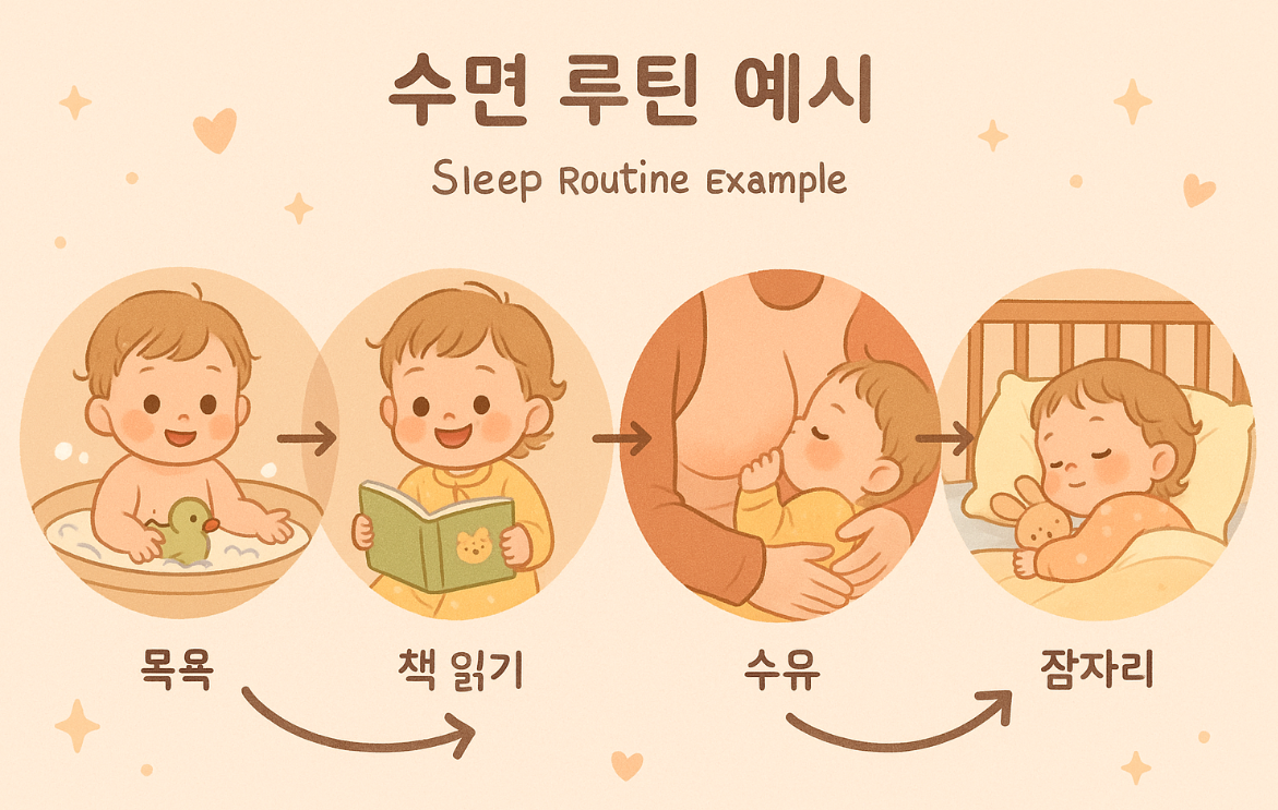 - 수면 루틴 만들기: 정해진 시간에 목욕, 책읽기 등을 통해 잠자리에 대한 신호를 줍니다.