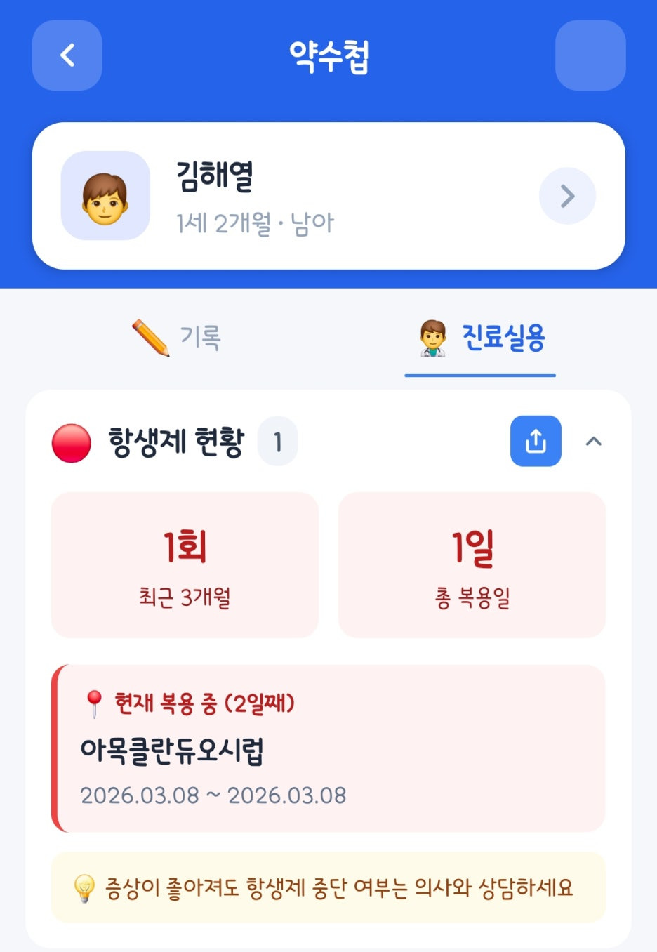 ✔️ 기능 2 │ 항생제 현황 · 약 부작용 기록