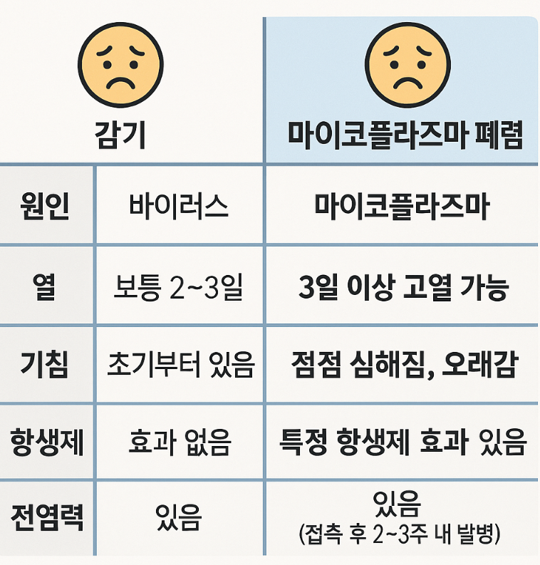 마이코플라즈마 폐렴과 감기 비교