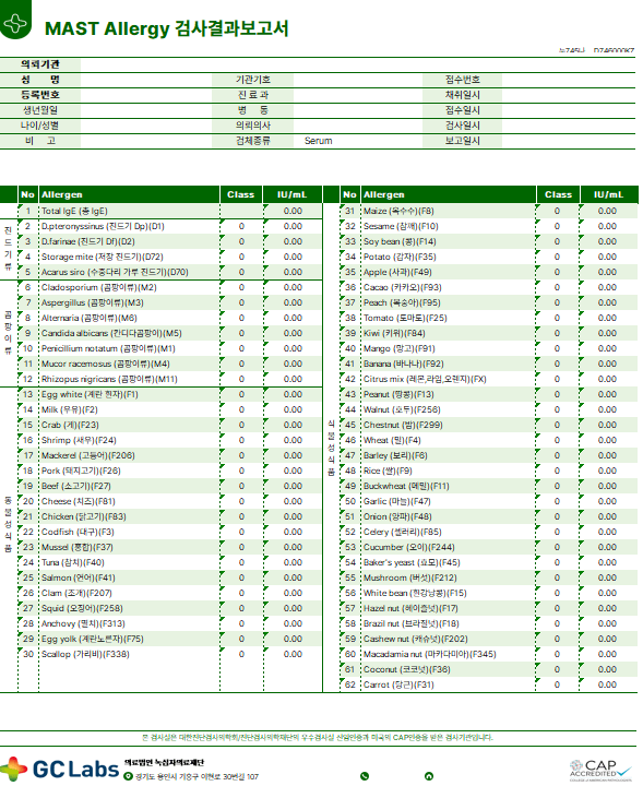 | 항목 | MAST | ImmunoCAP |