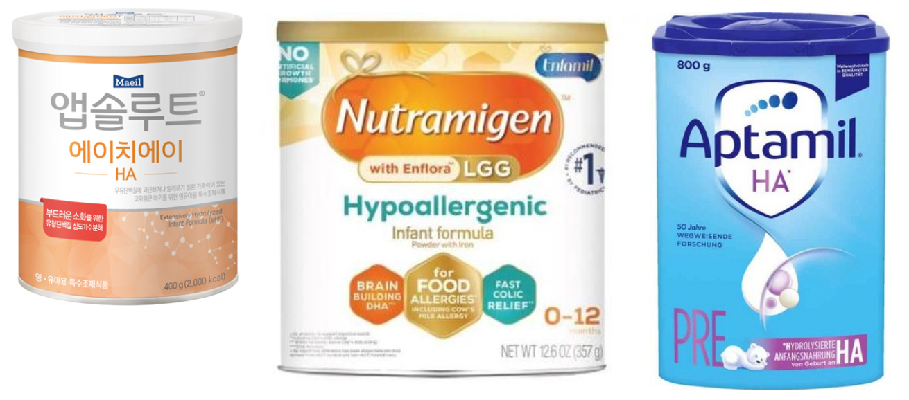 | 부분 가수분해 | 예방용, CMPA 치료 X | 앱타밀 프로퓨처HA 등 |