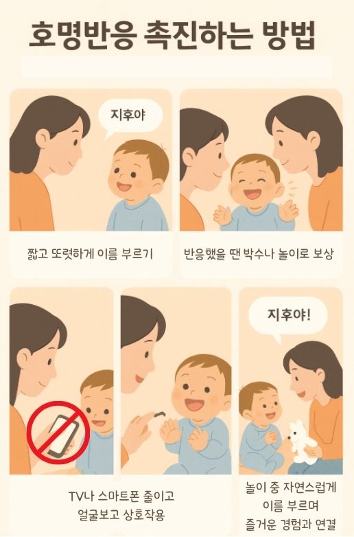 📌 이름을 불러도 9개월 이후까지 전혀 반응이 없다면 발달 지연 또는 청력 문제를 의심해볼 수 있어요.