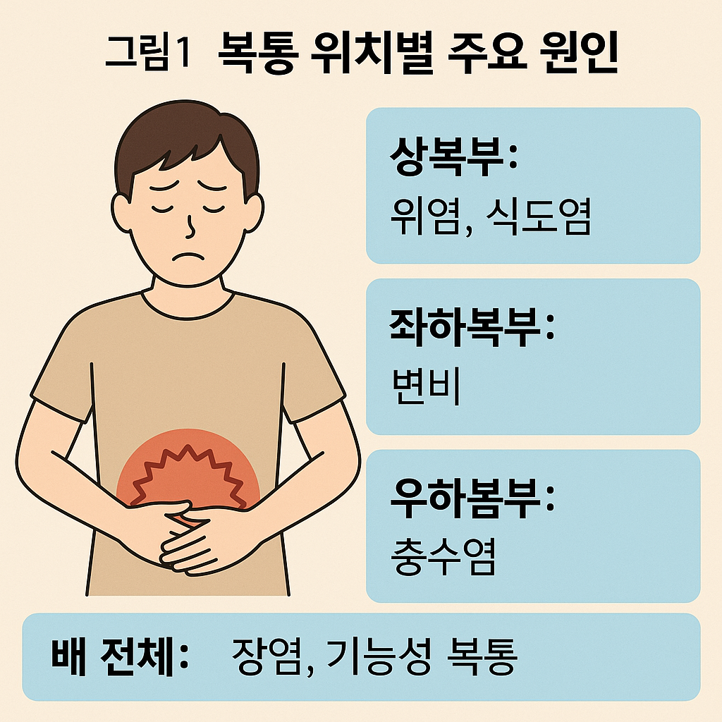 | ✅ 기능성 복통 | 과민성 장, 스트레스 | 아픈 위치가 명확하지 않고 간헐적 |