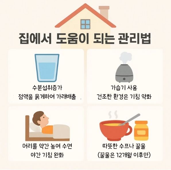 💧 가습기 사용 – 건조한 환경은 기침을 악화시킵니다.