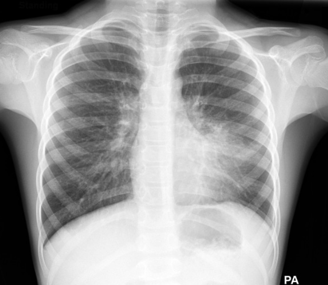 - 흉부 X-ray: 폐의 염증 범위 확인